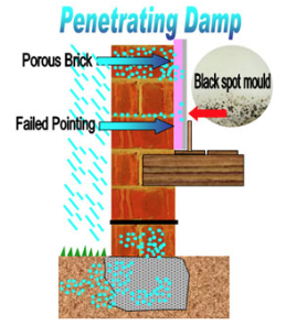 Penetrating damp is when rainwater is penetrating through brickwork, this can happen if the mortar in the brickwork has become brittle and loose or the bricks themselves have become very porous over time, defective guttering etc. This requires a different remedial treatment. A water repellent coating can be applied, this will allow the bricks to still breathe and repel water. The cause of the issue will also need to be fixed, i.e. re pointed, guttering fixed etc. Plasterhawks are penetrating damp specialist and can give you a full damp inspection to identify the issue.